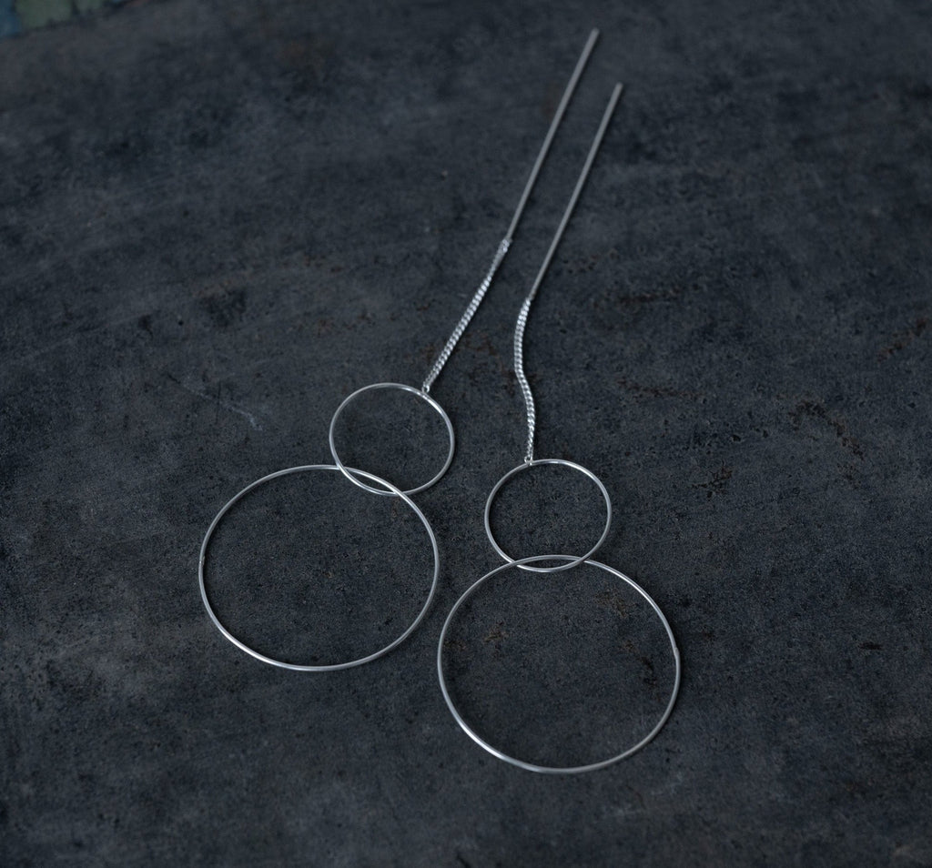 Simple 925 silver two rings chain stick earrings (the bigger ring is 28 mm diameter)