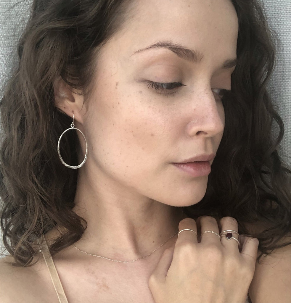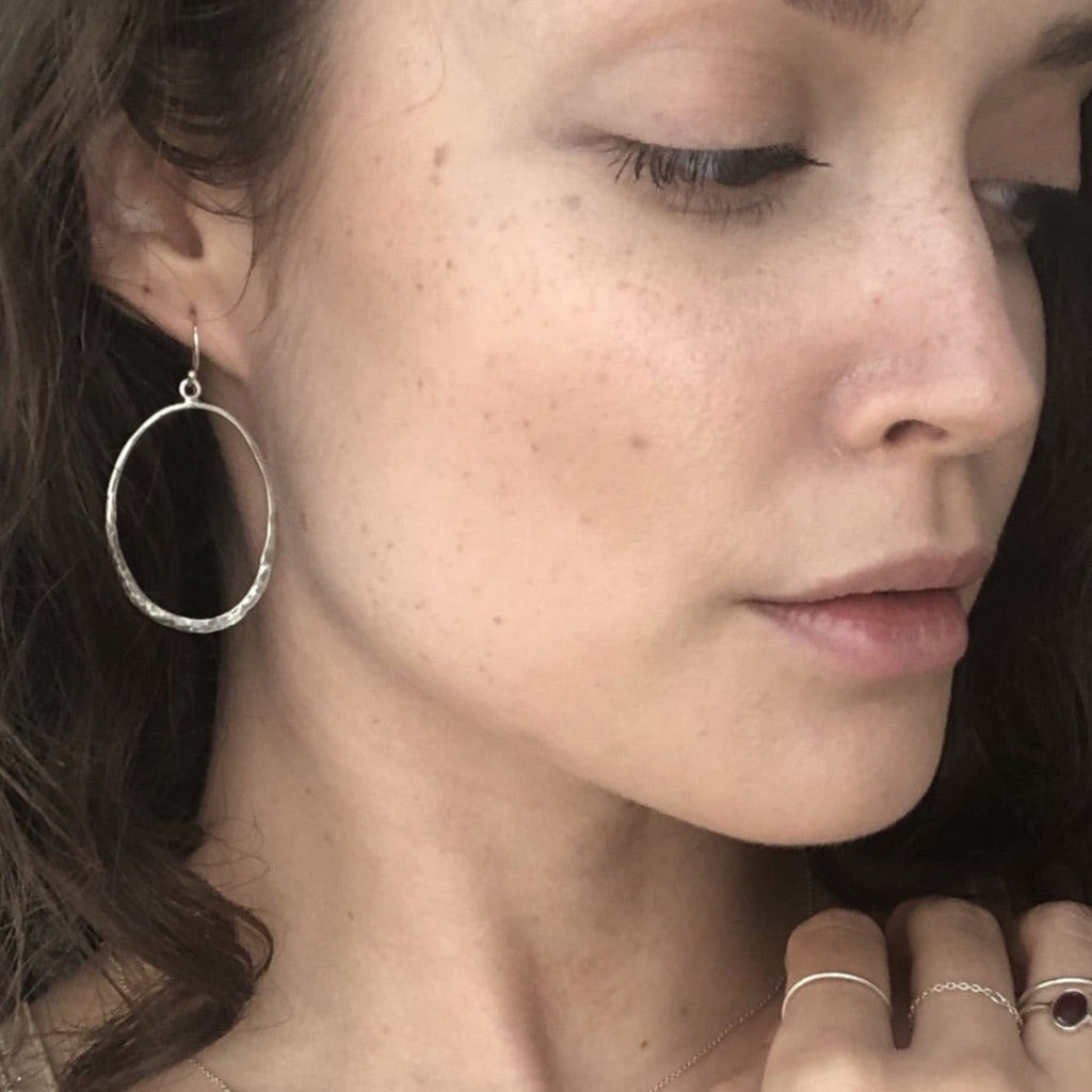 'hammered look' organic handmade earrings in different variations .