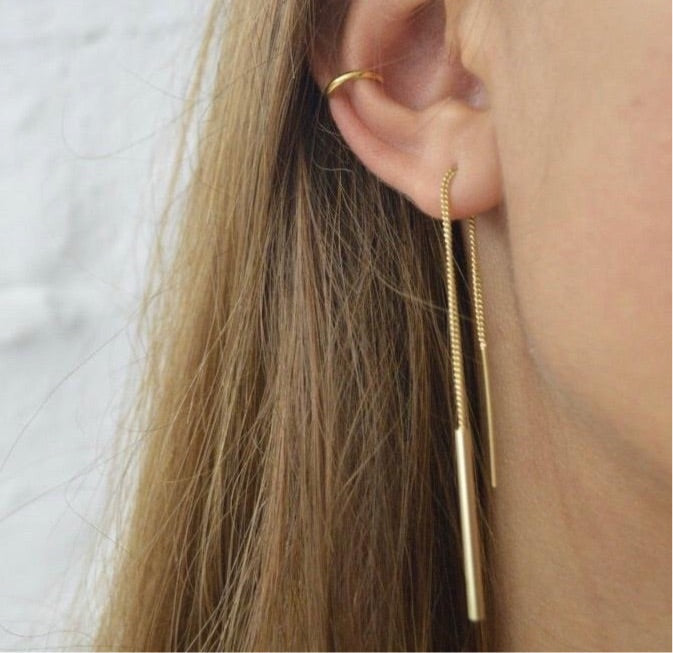 Sterling silver, oxidized silver or silver gold plated elegant bar earrings. These can be used in three different lengths: all the way through, in the middle or at the beginning.