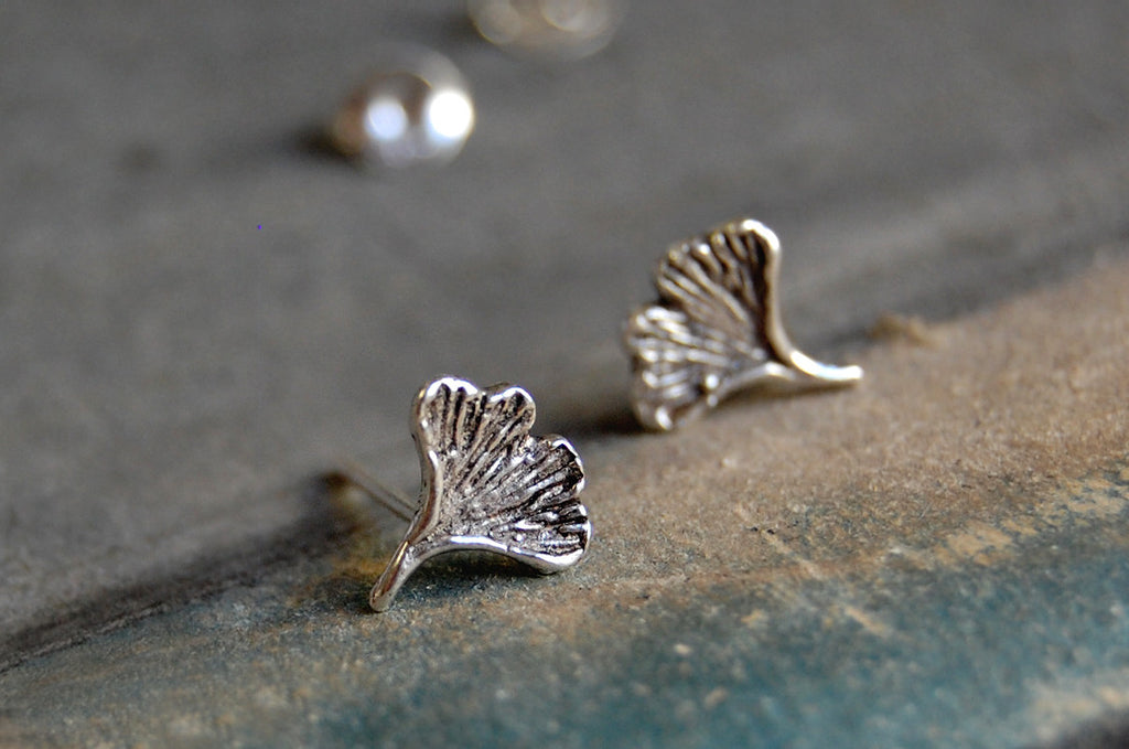hand made 925 silver gingko earstuds (9/9 mm)