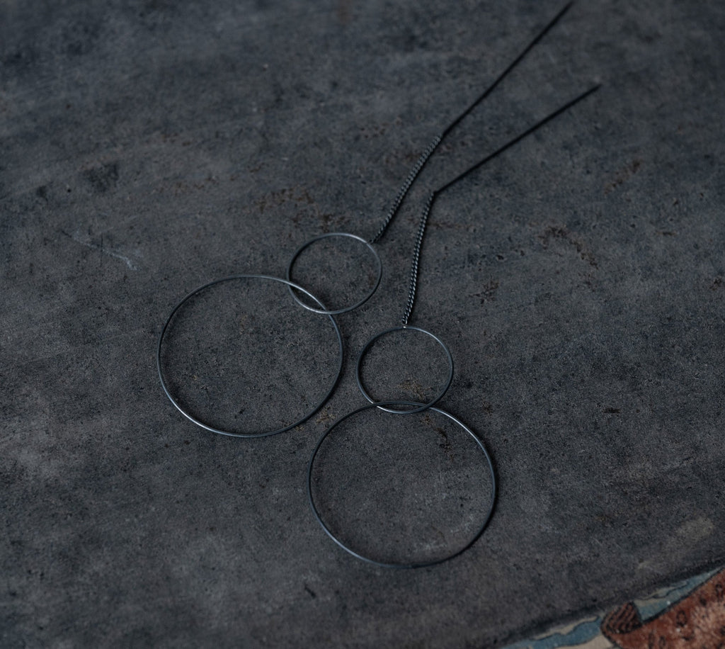 'Two rings' chain stick earrings | 925 Silver oxidized