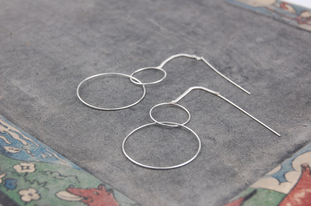 Simple 925 silver two rings chain stick earrings (the bigger ring is 28 mm diameter)
