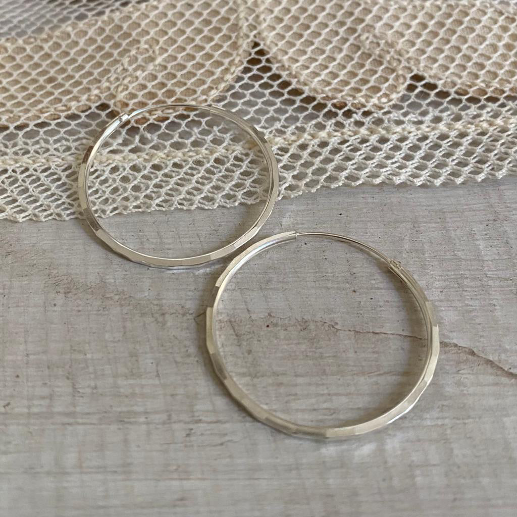 Faceted 925 sterling silver hoop earrings. this minimalist yet bold style earring suits every outfit. you can mix and match them with our other cute silver small earrings.