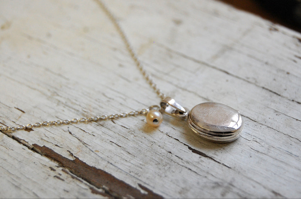 hinged 925 sterling silver locket with sweet water pearl on fine 925 sterlingsilver chain.