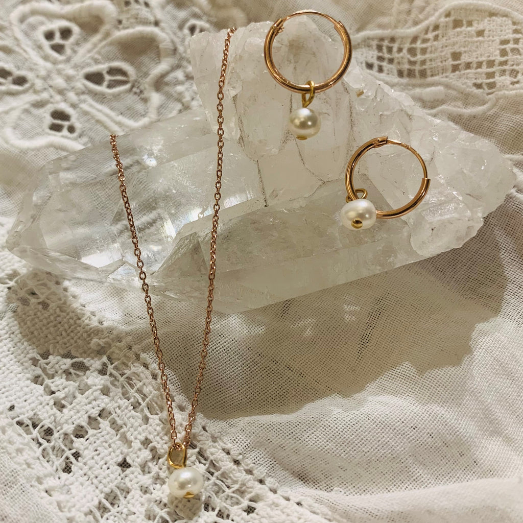 classic white sweet water pearl on a thin 925 silver sterling 24K rose gold-plated chain, you can choose from 40 cm or 45 cm long