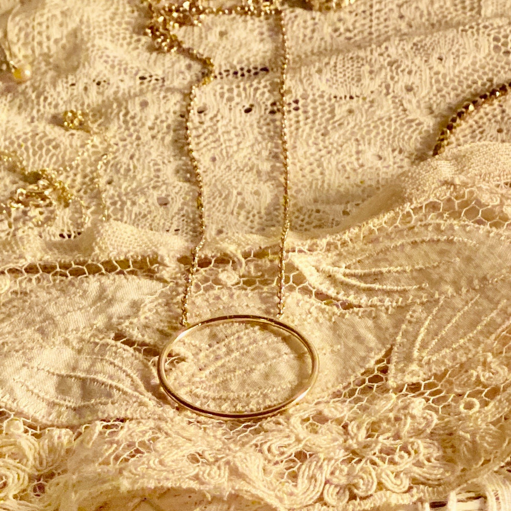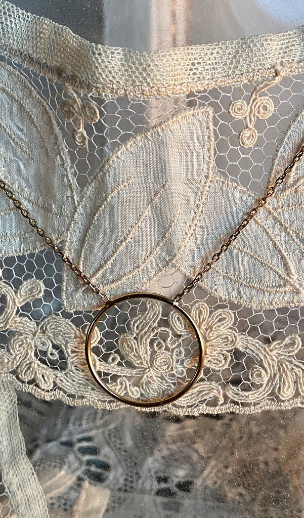 The chain is 40 cm long with a 3 cm extension and the circle has a diameter of 2,5 cm.
