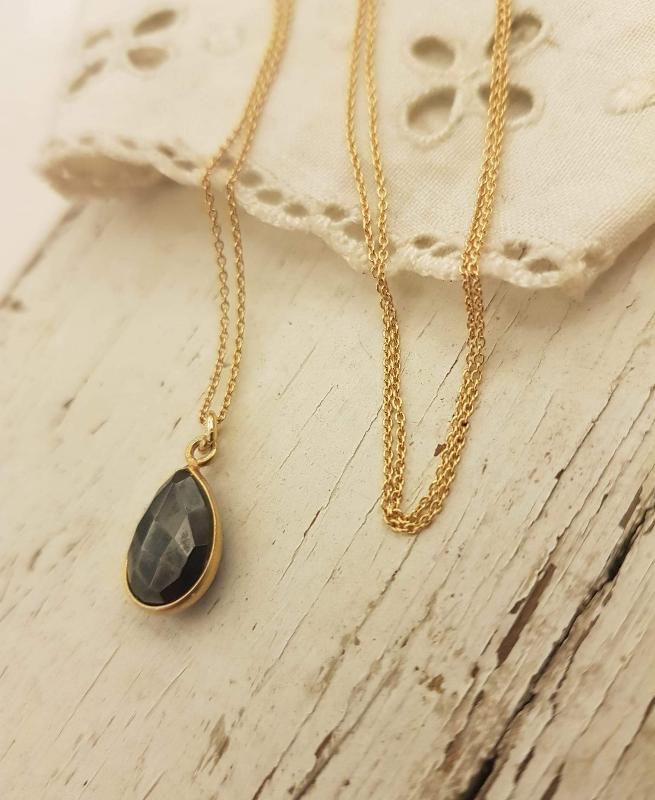 onyx stone pendant on gold-plated 925 sterling silver chain.