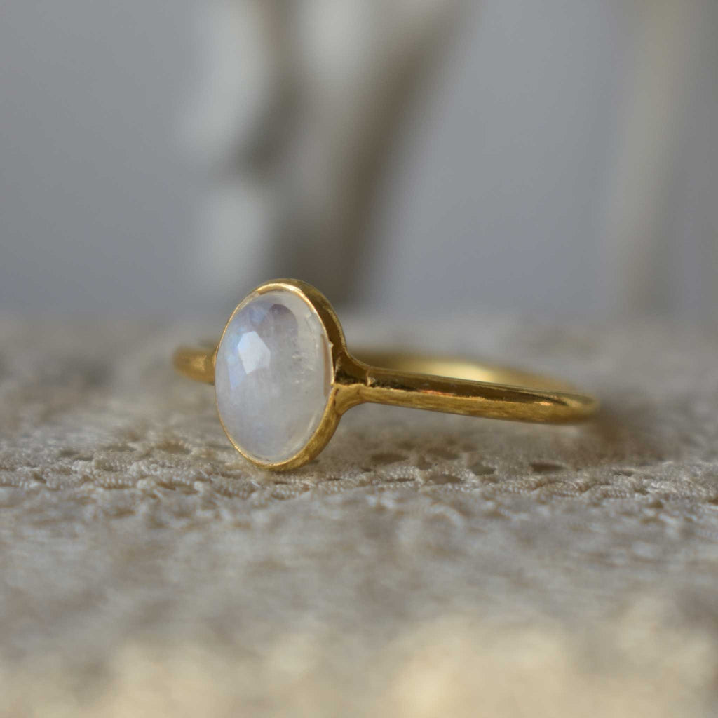 Moonstone | 'Laia'  Oval ring | 24k Gold-plated