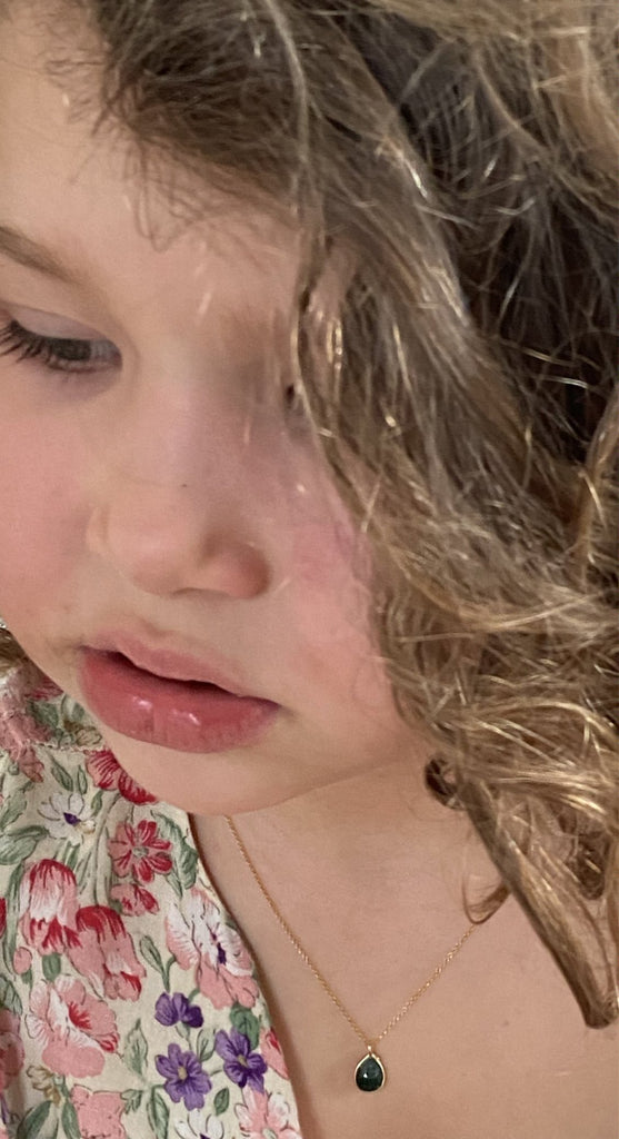 cut emerald pendant on 925 sterling silver 24 k gold-plated chain.